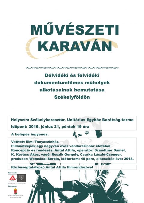 Consiliul Județean Harghita și Centrul Judeţean pentru Conservarea şi Promovarea Culturii Tradiţionale Harghita cu Biserica Unitariană din Cristuru Secuiesc, sponzorizat de Ministerul Resurselor Umane din Budapesta organizează prezentare de film documentar din Serbia. În cadrul programului Caravana Artelor se organizează prezentări de filme documentare din Serbia și Slovacia în localități din județul Harghita, Mureș și Covasna. La Cristuru Secuiesc în Sala Prieteniei a Bisericii Unitariene pe data de 21 iunie, vineri, începând cu orele 19 va fi prezentat filmul documentar cu titlul Tanyaszínház. Pillanatképek egy negyven éves vándorszínház életéből în prezența regizorului, un film despre un teatru fondat în anul 1978, care organizează spectacole în localități izolate în Serbia. Regizor: Antal Attila, cameraman: Szandtner Dániel, K. Kovács Ákos, producție: Wemsical Serbia, 40 minute, anul producției: 2018.